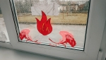 Цветные мелки. Если у детей есть обычные цветные мелки (не восковые!) можно воспользоваться ими. Мелки потереть на мелкой терке и развести водой в кашицу. Наносить кистью или губкой. Мел прекрасное средство для мытья окон и рисунки по окончании акции без проблем смоются.